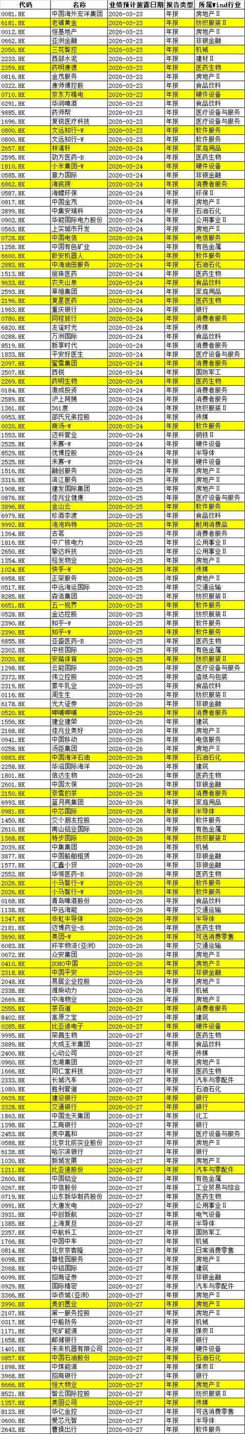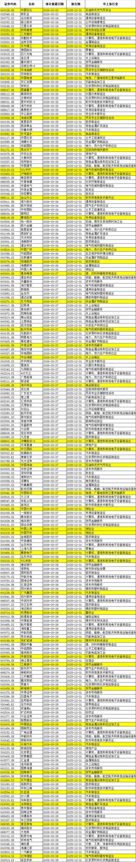中国电信、中国移动、中国海洋石油、中国石油、海底捞、知乎等财报也将公布。此外,“物理AI第一股”五一视界的新品发布亦值得关注。